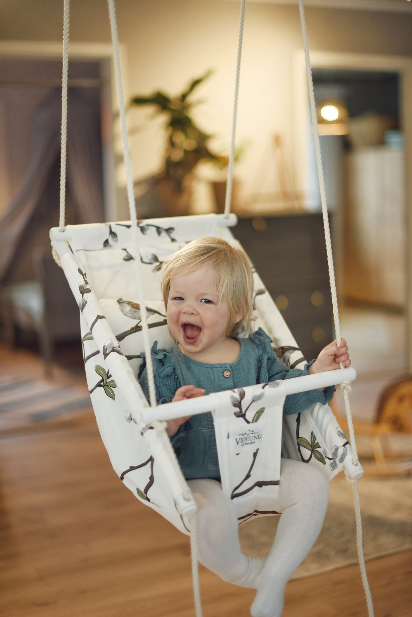 Gungan bjuder på lekfullhet och tillverkas till 100% för hand. Videung babygunga är en av våra absolut bästsäljande babygungor från originalkollektionen och passar utmärkt som en unik och annorlunda doppresent.